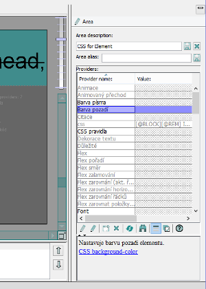 Do providerů se vkládají zdrojové kódy, multilingvní texty a nastavení. Pro editací provideru musíte vybrat oblast nebo několik oblastí a v seznamu vpravo jej otevřít pomoví dvojkliku. Postup výběru oblasti je popsaný v kapitole Výběr oblastí. Na následujícím obrázku je uveden příklad seznamu providerů pro vybranou oblast.
